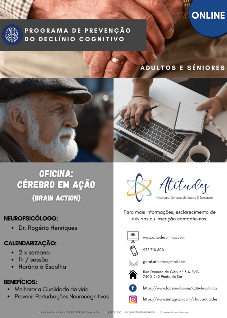 Assistimos, nas últimas décadas ao incremento da esperança de vida. No entanto, com o envelhecimento são observadas mudanças na cognição, na aptidão física e na qualidade de vida. O declínio das funções cognitivas, a diminuição da independência e da aptidão física e motora constituem-se como fatores de risco para o surgimento de patologias crónicas como as neurodegenerativas. Calcula-se que, entre 8% a 15%, de idosos com défice cognitivo ligeiro progridam, todos os anos para quadros demenciais.