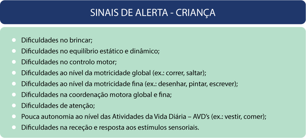 Procure um Terapeuta Ocupacional sempre que se verificarem os seguintes sinais de alerta: