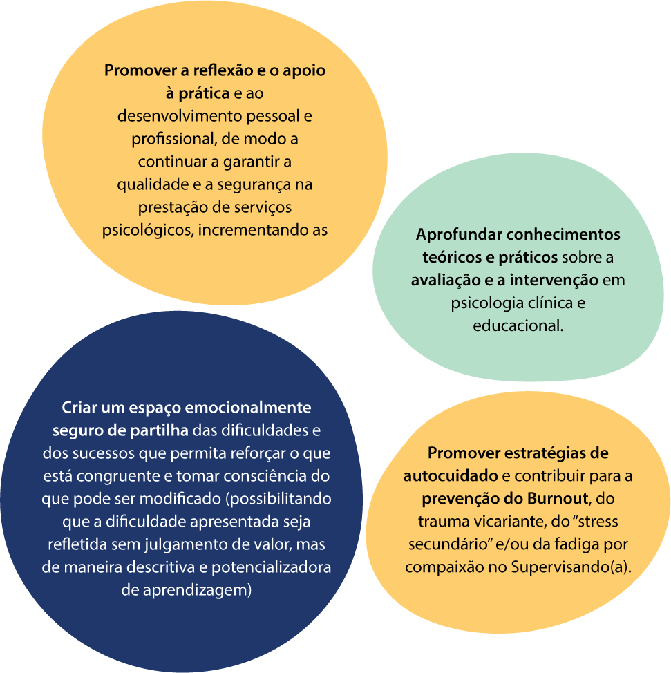 A supervisão consiste num processo interativo, colaborativo e dinâmico, entre Supervisor(a) e Supervisando(a), ancorado nos princípios ético-deontológicos da profissão e na evidência científica, baseado em competências e pautado pela reflexão e autoavaliação.